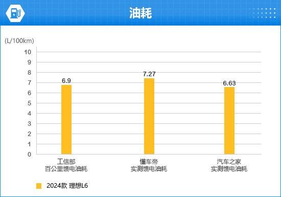 通過收集工信部申報信息和各大汽車垂直媒體的測試數據來看,2024款理想L6官方公布的饋電油耗為6.9L/100km;汽車之家實測饋電油耗為6.63L/100km,懂車帝實測饋電油耗為7.27L/100km(以上數據僅供參考)。