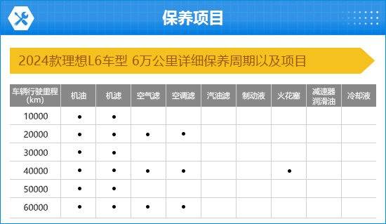 2024款理想L6車型的整車質保期為5年或10萬公里。保養方面,全系車型需要在10000公里或12個月(以先到為準)時進行首保,保養項目為更換機油、機濾,此后每10000公里需要更換一次??諝鉃V芯和空調濾芯每20000公里更換一次;火花塞每40000公里更換一次;前減速器油和制動液每80000公里更換一次;冷卻液每120000公里更換一次。在“百名車主評新車”調查中,對于2024款理想L6使用成本的評價,表示“非常滿意”和“滿意”的車主占比分別為8.6%和47.6%,另有33.3%的車主表示“一般”,認為“不滿意”的車主占比為10.5%。