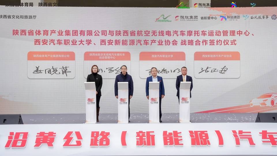 活動現場,陜體集團聯合陜西省航空無線電汽車摩托車運動管理中心、西安汽車職業大學、西安新能源汽車產業協會簽訂戰略合作協議。陜體集團將繼續以體旅文商產業融合為核心,加大推進“體育+”的全方位交流與多維度合作,開創陜西體旅文商高質量融合發展的新篇章。