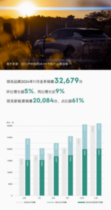 2024年11月領克銷量為32,679臺,連續刷新月銷紀錄