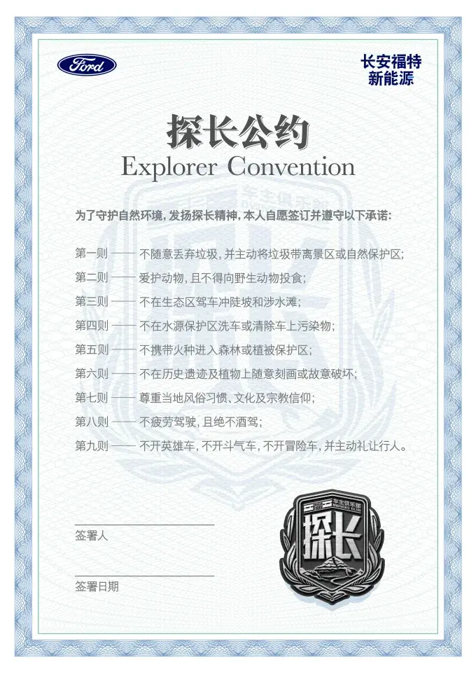任何支持生態環保的探險者車主均可簽署《福探長公約》,約定守護自然環境,成為一名福探長,加入文明探旅的踐行中。