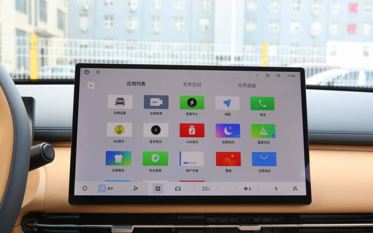 進入車內,銀河星艦7 EM-i的中控布局與銀河E5比較接近,充滿了平直的線條,而且配合上貫穿式的氛圍燈帶,會覺得座艙比較舒展,10.2英寸的儀表屏+14.6英寸的中控屏組合,也比銀河L7的三塊屏幕看上去清爽一些。