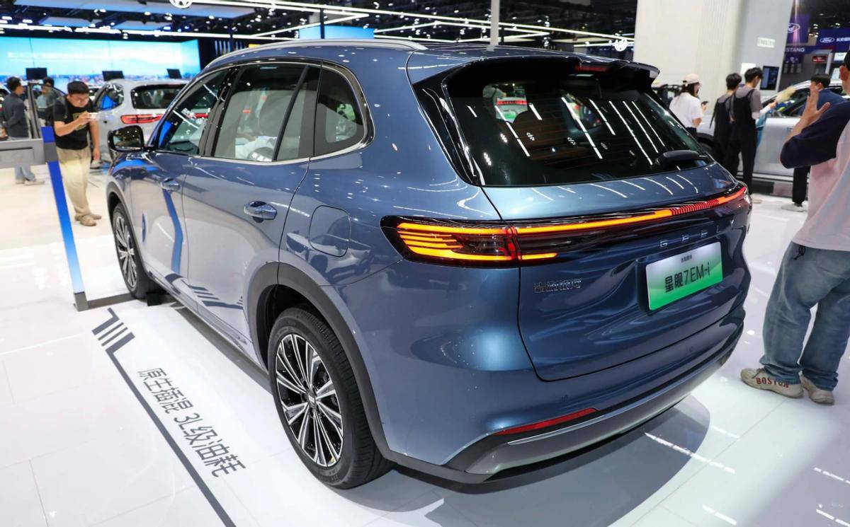 在續航和能耗上,銀河星艦7 EM-i提供55km和120km兩種純電續航,全部采用磷酸鐵鋰電芯,官方給出的滿油滿電綜合續航最高能夠達到1420km,CLTC標準下百公里虧電油耗是3.75L,要知道宋Pro DMi的NEDC標準下虧電油耗是3.79L,同時支持快/慢充。