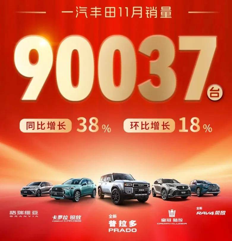 自主車企在市場上強勢發展,合資車企的份額難免受影響。但是面對自主新能源車的沖擊,部分傳統合資企業已經在戰略調整中找準了自己的節拍,快速跟上產業轉型發展的步伐。其中,一汽豐田11月銷量90037輛,同比增長38%,環比增長18%,創本年度及歷史11月銷量“雙最高”。