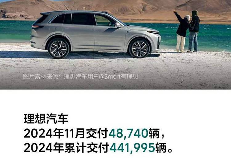 理想汽車11月份交付新車48740輛,同比增長18.8%,2024年共交付441995輛。截止目前,理想汽車歷史交付新車1075359輛,成為首個交付量突破百萬的新勢力品牌,今年4月份上市的理想L6累計(jì)交付量已經(jīng)超過16萬輛,成為了理想最走量的車型。