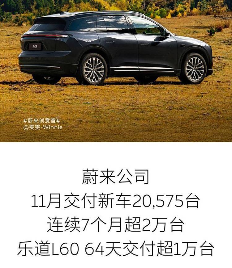 蔚來汽車11月份交付新車20575臺,連續(xù)7個月銷量突破2萬臺。其中,蔚來品牌11月交付新車15493臺,今年前11個月累計(jì)交付180599臺;樂道品牌11月交付新車5082臺,12月將首次實(shí)現(xiàn)單月交付量破萬臺。本月蔚來還將發(fā)布第三品牌firefly螢火蟲,蔚來品牌旗艦車型ET9也將在本月正式上市。