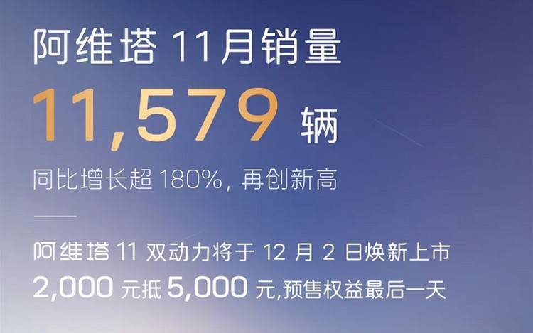 阿維塔11月份的成績同樣耀眼,交付量11579臺,同比增長180%。阿維塔銷量的上漲,一方面是入門車型阿維塔07的助力,其實(shí)說白了更重要的是帶來了增程的動力形式,畢竟在當(dāng)下,純電的消費(fèi)群體遠(yuǎn)沒有混動車型的群體大。此前阿維塔旗下清一色的都是純電車,阿維塔目前正在推進(jìn)全系產(chǎn)品有增程和純電雙動力,以此來獲得更多的銷量。