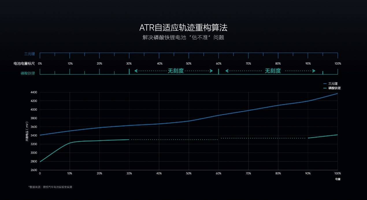 據介紹,為了解決這一困擾,理想汽車自研了ATR自適應軌跡重構算法,以優化磷酸鐵鋰電池的電量估算。這一算法能夠依據車主日常用車過程中的充放電變化軌跡,實現電量的自動校準。即便用戶長期不滿充或單純用油行駛,電量估算誤差也能保持在3%至5%,相比行業常規水平提升了50%以上。這使得理想L6在低溫場景下使用時,相比傳統算法放電電量提升了至少3%,讓冬季續航更靠譜。