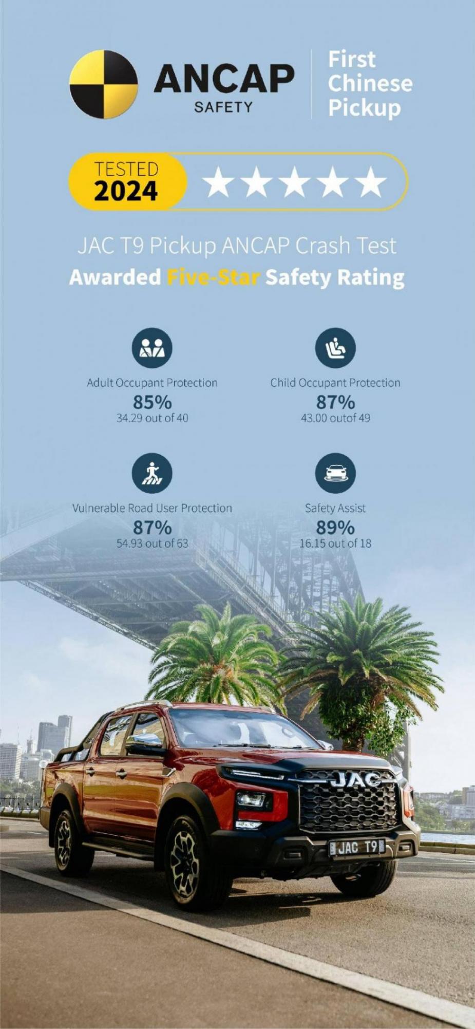 澳洲ANCAP新規下最高五星安全評級以及中國品牌皮卡第一個五星、全球皮卡綜合得分第一的“雙第一”,是對全新悍途以及江淮皮卡技術與實力的最大肯定。江淮皮卡也會持續發力,為全球用戶打造覆蓋多種動力、多元場景的高品質好皮卡,讓中國五星好皮卡享譽全球。