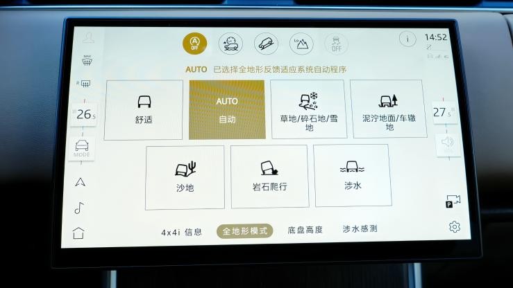 談到路虎,不得不提的便是它的看家本領——越野,新款攬勝搭載的這一套ARTS全地形科技系統(tǒng),簡單來講,可以把它理解為類似于相機的“傻瓜模式”,駕駛者只需要通過將模式調整為動態(tài)、舒適、自動、沙地等場景,車輛會根據(jù)指令及路面實時感知信息等,與可通過中控屏操作的主動式差速鎖、透明地盤和智能四驅系統(tǒng)等技術,為車主帶來更加輕松的駕乘體驗;當然,攬勝的主要場景其實還是以都會為主,新車在加入四輪轉向后,在靈活性上將會表現(xiàn)更好,即使車主自己駕駛,也可以較為輕松的在車流中行駛、穿梭。