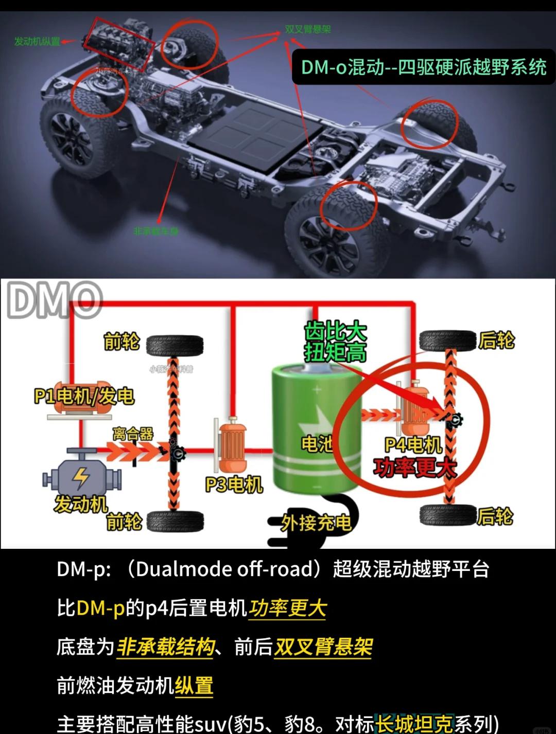 這樣對比來看,其實(shí)四驅(qū)系統(tǒng)功能性已經(jīng)很明顯。長城的Hi4-Z系統(tǒng)是將原本屬于硬派越野的Hi4-T系統(tǒng)新能源化轉(zhuǎn)變?yōu)镠i4-Z。而比亞迪的DMO系統(tǒng)是在新能源系統(tǒng)基礎(chǔ)上增加了越野功能,誰主攻越野一目了然。