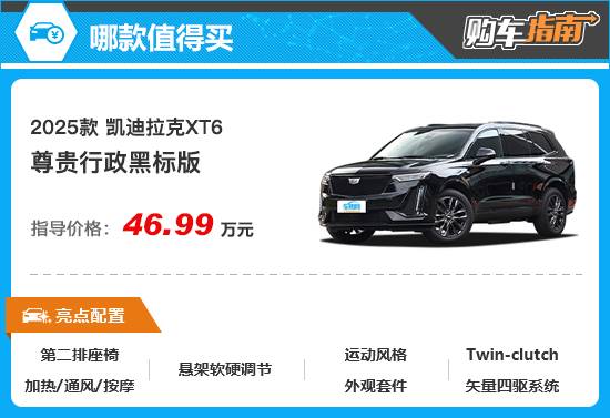 綜上所述,尊貴行政黑標(biāo)版在凱迪拉克新XT6全系車型中擁有更高的性價(jià)比,建議消費(fèi)者在購車時(shí)優(yōu)先考慮。
