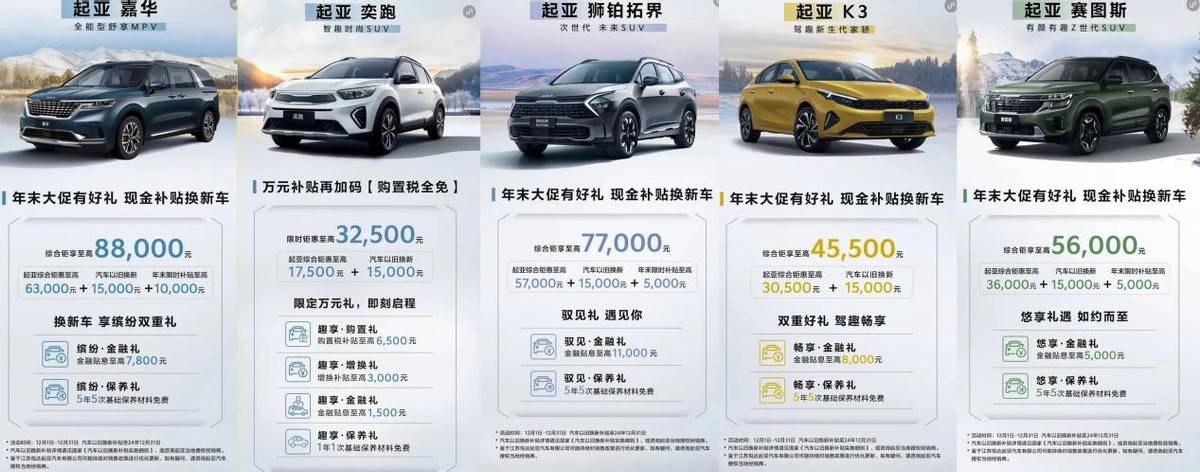 而像起亞智跑、EV5、K5、索奈、煥馳等車型則是不在此次的12月優(yōu)惠補(bǔ)貼范圍之內(nèi)。