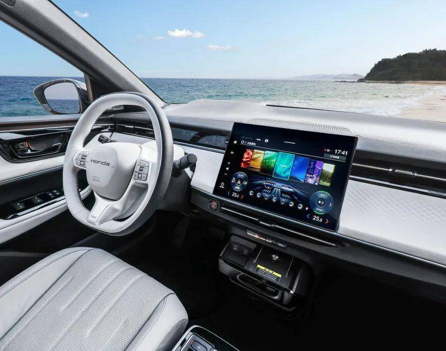 內飾方面,e:NP2 極湃2呈現出清爽的視覺效果,整個前排采用貫通式設計,如果主駕位置無法下車,用戶可以從副駕駛下車。另外,無線充電面板、杯架等常用裝配還采用的是隱藏式設計,可進一步優化車內空間,中控配備了12.8英寸高清屏,內置的是最新的Honda Connet 4.0智導互聯系統,功能豐富、操作流暢。除此之外,還支持Honda SENSING 安全超感,覆蓋多項主流輔助駕駛功能。更值得注意的是,e:NP2 極湃2全車的側窗均為多層隔音玻璃,后排側裝還是隱私玻璃,再加上主動降噪功能,整體的靜謐性和舒適性,在十二三萬這個價位里,e:NP2 極湃2的配置絕對夠豪華。