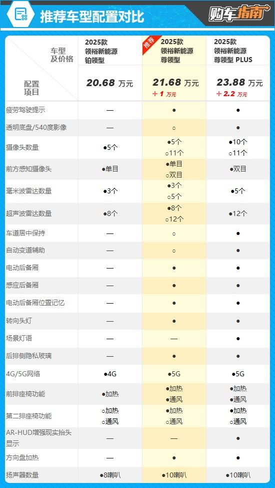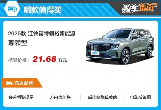 綜上所述,對于2025款江鈴福特領裕新能源的購買建議,編輯重點推薦售價21.68萬元的尊領型,消費者在購買時可優先考慮。