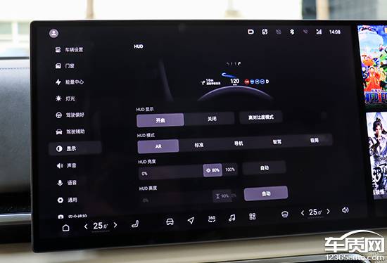 評(píng)測(cè)車配備AR-HUD增強(qiáng)現(xiàn)實(shí)抬頭顯示,顯示面積達(dá)到29英寸。在中控屏內(nèi)的控制頁(yè)面下,不僅可以開(kāi)啟或關(guān)閉HUD顯示,而且還能進(jìn)行模式切換,包括AR、標(biāo)準(zhǔn)、導(dǎo)航、智駕以及極簡(jiǎn)。此外,HUD的亮度和顯示高度調(diào)節(jié)均提供手動(dòng)和自動(dòng)兩種選擇,操作十分便利。