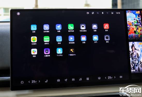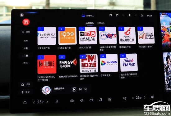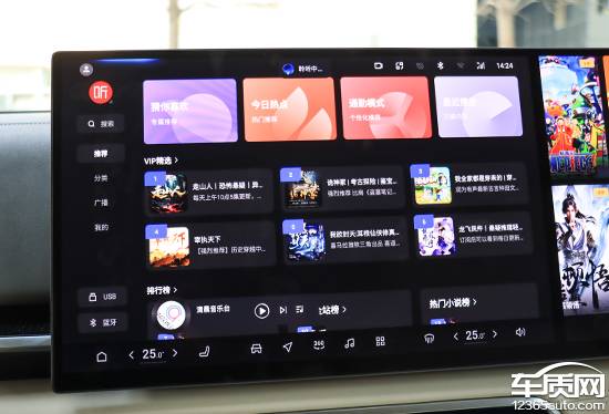 系統(tǒng)內(nèi)置的網(wǎng)絡(luò)廣播電臺(tái)數(shù)量相當(dāng)多,包括本地電臺(tái)以及全國(guó)電臺(tái)。此外,通過(guò)該頁(yè)面左下角的快捷選項(xiàng),還能選擇切換不同音源,包括USB以及藍(lán)牙等。副駕娛樂(lè)屏主要負(fù)責(zé)愛(ài)奇藝以及QQ音樂(lè)等影音娛樂(lè)的播放,得益于屏幕尺寸較大且顯示效果出色,因此整體觀感確實(shí)相當(dāng)不錯(cuò)。
