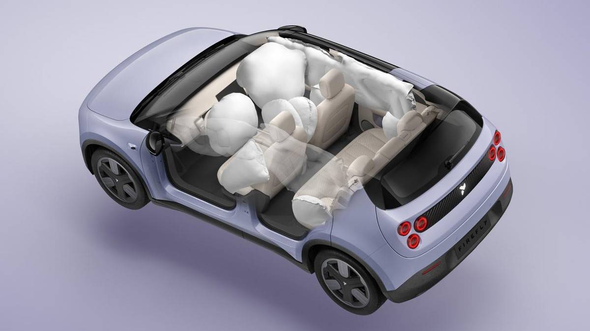 在車身結構設計上,高強度鋼與鋁合金使用占比高達83.4%,比例看齊豪華車型。白車身抗扭剛度高達35,700牛.米/度,表現同級最強。firefly螢火蟲的車身正面采用雙根超寬防撞梁,前車門采用1,500兆帕超高強度熱成型鋼,使車門在激烈碰撞場景下能夠有效抵御碰撞能量。