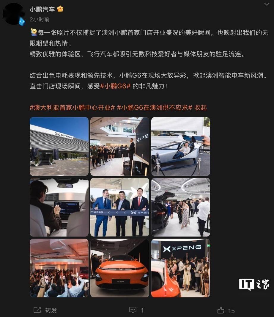 隨著全球對環保和可持續發展的日益重視,電動汽車市場正迎來前所未有的發展機遇。小鵬汽車作為中國電動汽車行業的佼佼者,憑借其強大的研發實力和創新能力,正在全球范圍內積極布局,努力成為推動電動汽車行業發展的重要力量。此次澳大利亞門店的開業,無疑為小鵬汽車的海外市場拓展注入了新的動力。