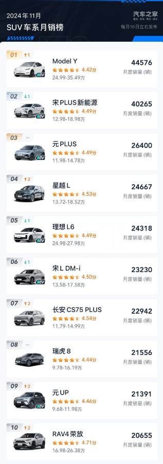 11月份SUV銷量排行榜前十名出爐了,燃油車還有4款,其中,三款車都是自主品牌車型,表現非常強勢,我們一起來看看吧!