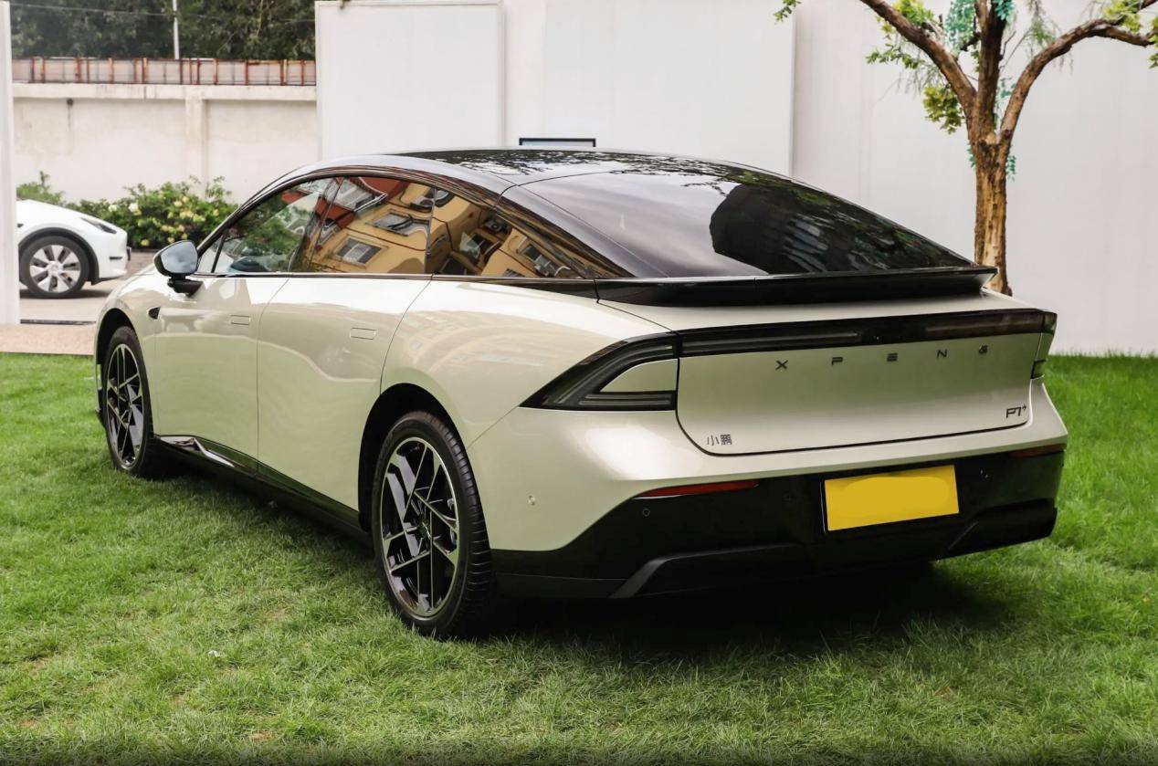 小鵬P7+的車身長度相比P7有所增加,達到了5056*1937*1512mm,軸距為3000mm,車頂依然采用溜背式的設計,修長的車身讓車頂的流暢度進一步增加,同時熏黑的車柱和車頂涂裝也讓其具有了懸浮效果,腰身的線條沿著下窗線逐步上揚,并貫穿至車尾,同時車門區域利用型面的起伏增加了光影效果,在細節區域,裙邊波浪式的黑色組件不僅讓腰身保持緊致,也讓整車具有了一定的俯沖效果。我尤其喜歡新車的輪轂,交錯的多輻式設計也增添了運動感。