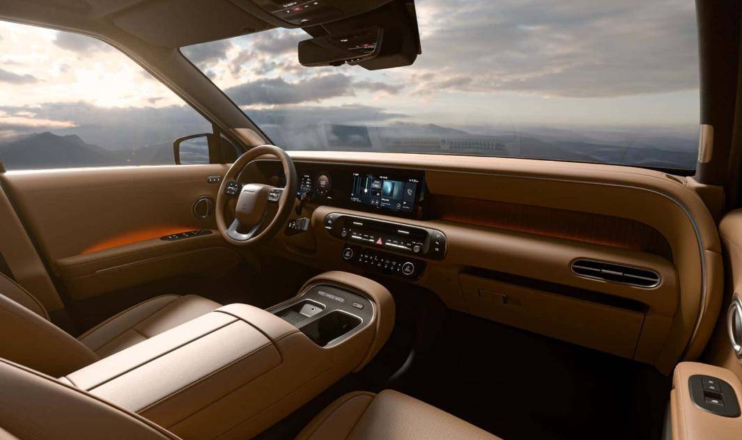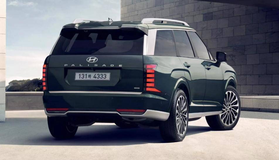 車身側(cè)面,新車線條同樣平直,幾乎沒有弧線設(shè)計,D柱上的大面積格柵搭配上墨綠色車漆,更顯質(zhì)感。雖然官方還未公布具體尺寸,不過作為改款車型,新車尺寸預(yù)計變化不會很大,依舊是一款中大型SUV。比較有意思的是,海外版新車不僅提供了2+2+3的7座布局,也有2+3+2的7座布局,能夠照顧到不同人的使用需求。