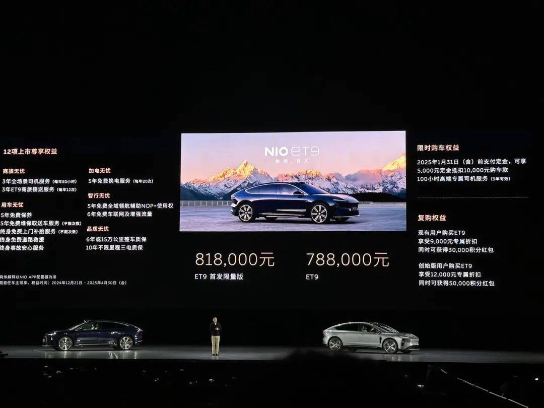ET9 的規劃研發始于 2019 年,蔚來過得最艱難的一年。一直到 2023 年 12 月的 NIO Day 上,ET9 才首次亮相,并以 80 萬的價格發布預售。如今,時間又過去了一年,ET9 才正式上市。