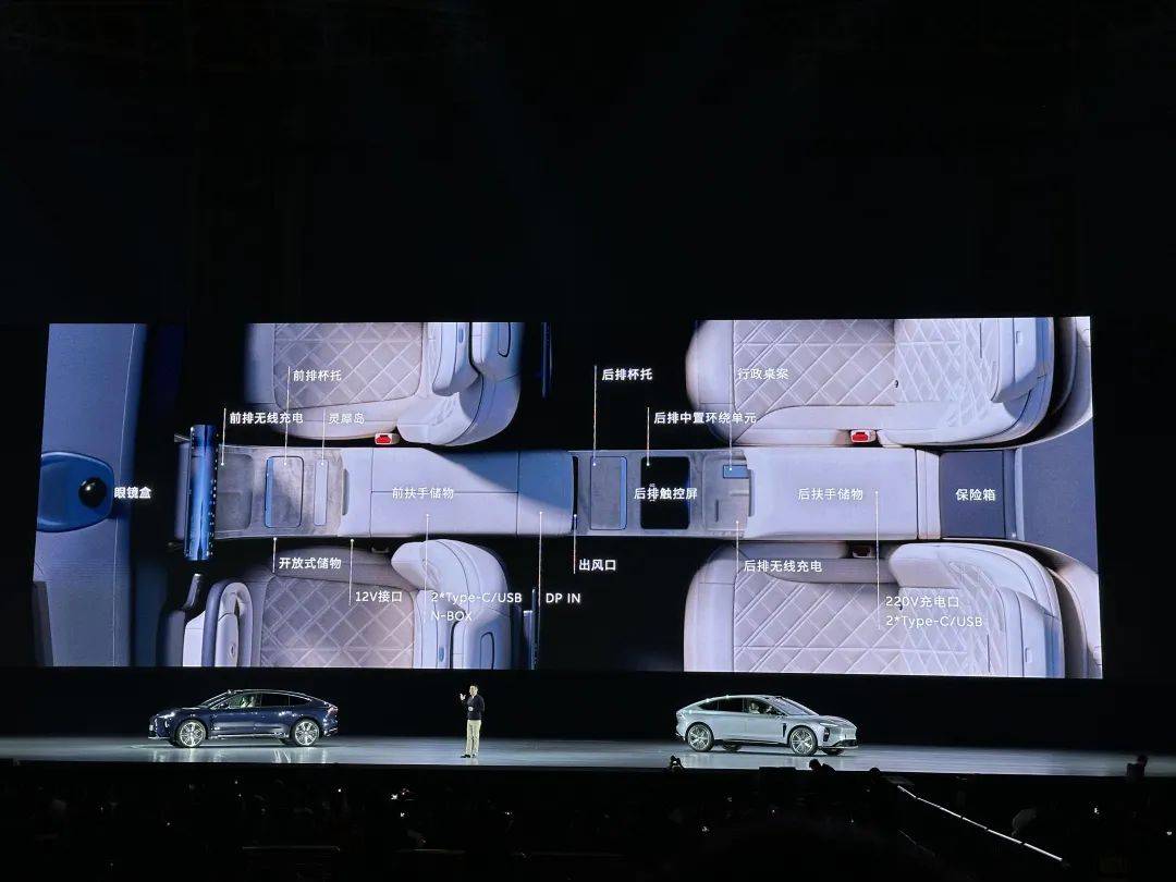 另外,ET9 還有「一鍵隱私」功能,即一鍵開啟全車電動遮陽簾。在后排,ET9 也搭載了一個中央保險箱,讓商務用戶可以隨車放一些機密文件,當然,也可能是家庭成員的私房錢。