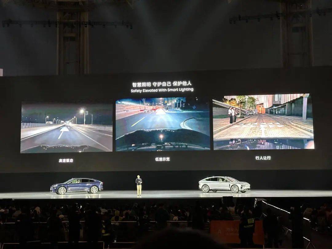 ET9 搭載的前大燈也很有技術含量。根據官方信息,ET9 的前大燈的最遠照射距離為 500 m,可以結合算法避開對車輛、電動車、行人等道路參與者的照射,實現分區照明。同時,ET9 的前大燈還支持投影、隨方向盤轉動、示寬、與行人交互等功能。