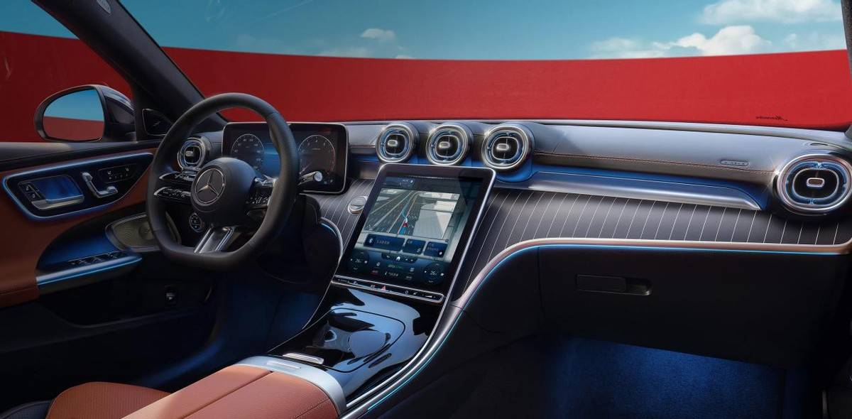 車尾的話,整體輪廓依舊是現款奔馳C級的設計,而區別則在于尾燈光源樣式發生了改變,替換成了類似奔馳E級這種“三叉星徽”車標樣式的光源。
