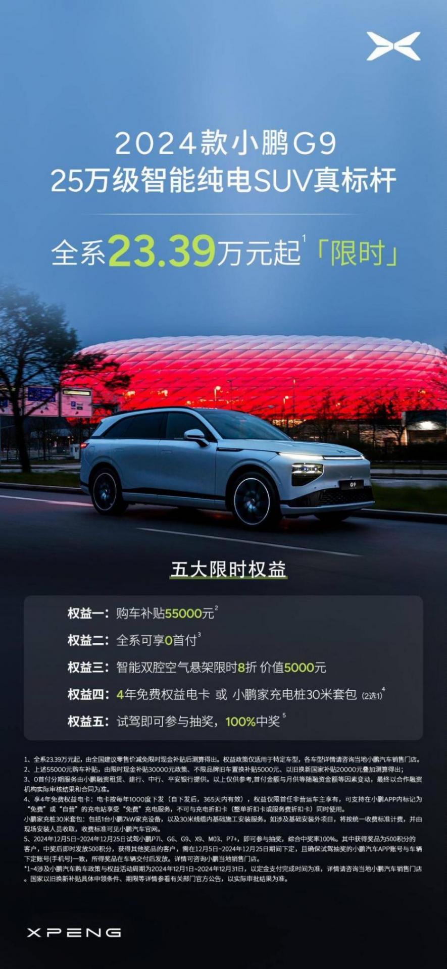隨著2024年尾聲臨近,汽車制造商們即將對過去一年的工作進行總結(jié),并在年底推出優(yōu)惠政策回饋用戶,小鵬汽車亦是如此,小鵬G9史上最大鉅惠至高60000元,該車在最初上市時指導(dǎo)價是30.99-46.99萬元,如今在限時優(yōu)惠政策下,入門價格已降至23.39萬元,20多萬買中大型純電SUV,讓人很難不心動。