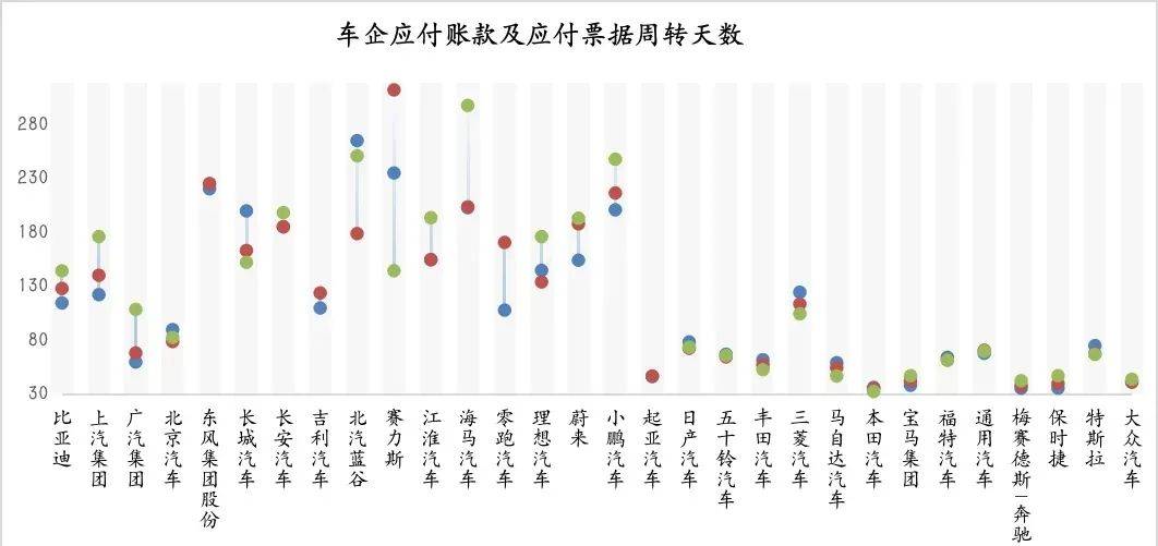 相比之下,美系車企整體周轉(zhuǎn)速度稍緩,但也明顯低于中國(guó)車企的最短賬期。福特汽車、通用汽車和特斯拉周轉(zhuǎn)天數(shù)分別達(dá)到了62天、70天和67天。