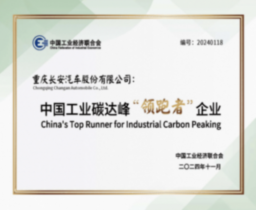 2024年11月30日,中國工業經濟聯合會舉辦“第三屆中國工業碳達峰論壇,長安汽車榮獲“2024年中國工業碳達峰領跑者企業”榮譽稱號。