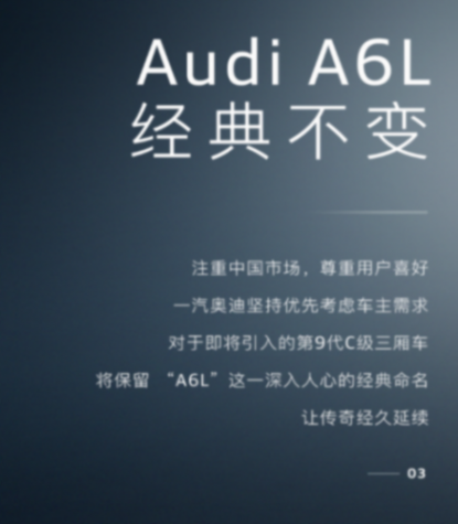 不對,在國內它或許,大概,可能還是叫A6 Allroad。之前,奧迪官方曾表示,將用車型名稱中的數字來區分電動車型和燃油車型,這也就意味著全新燃油版A6或許會更名為A7,以此來符合奧迪新的命名策略,但是在前段時間,一汽奧迪官方表示,對于第9代C級三廂車將保留A6L的經典命名方式。