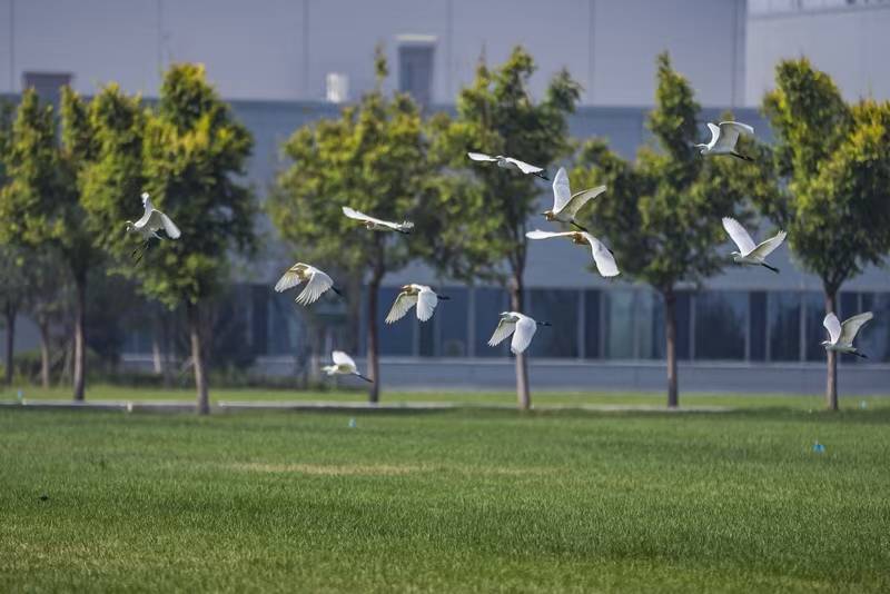 在BMW汽車生產之旅,作為“夏日限定”的驚喜,游客還有機會邂逅悠然閑逛的牛背鷺。里達廠區已成為國家二級保護動物牛背鷺在北方的棲息地;廠區內的人工湖使用處理后的“循環水”作為水源,滋養一池錦鯉,讓生態花園成為員工們工間休憩打卡的小景點。這正是堅持綠色“智”造,并積極參與當地生態環境與生物多樣性保護的成果。