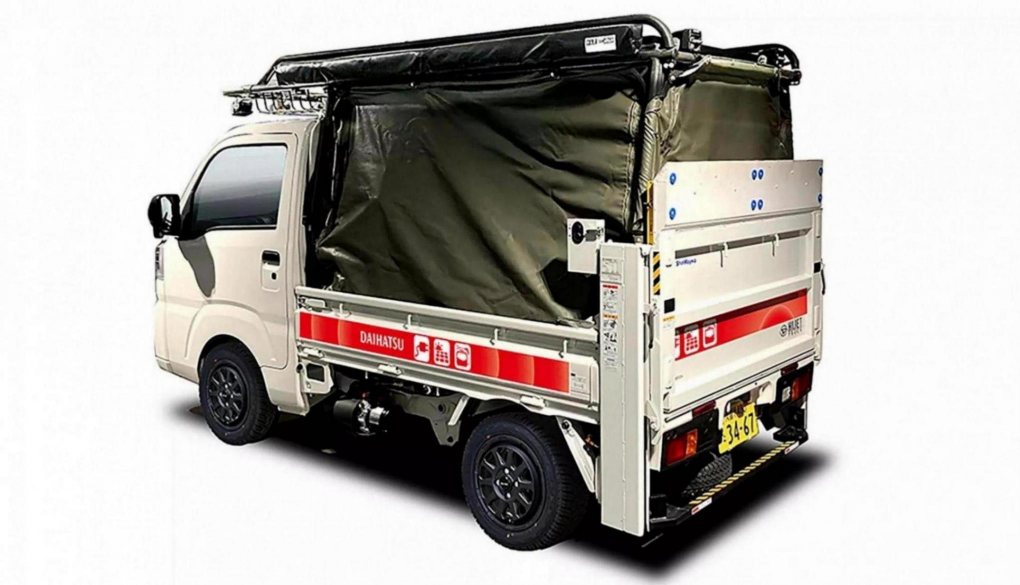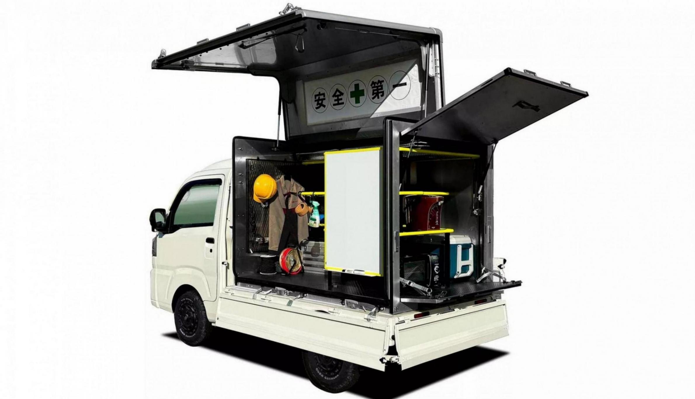 ▲Hijet Truck Tool Base則是用在建筑工地,可作為移動工具車、并提供工人休息時的遮陽帳篷。