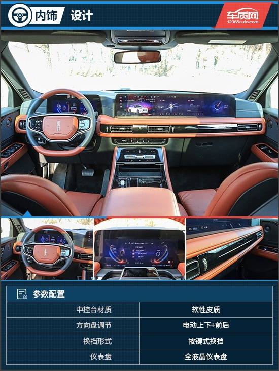 進入內飾,全新長安林肯飛行家依舊展現(xiàn)出濃郁的美式豪華風格,這主要得益于大量觸手可及的軟性皮質包裹和精致的組件,共同營造出強烈的檔次感。同時,方向盤尺寸偏大,且配備了大面積的多功能按鍵,這些都與長安林肯飛行家的整體風格十分契合,進一步凸顯其“大”的特點。