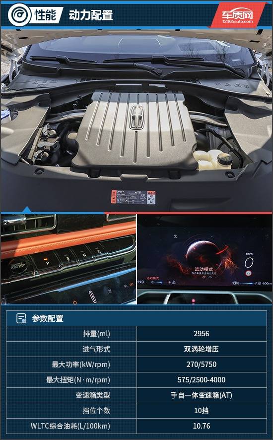 動力方面,全新長安林肯飛行家全系標配3.0T V6雙渦輪增壓發(fā)動機,最大功率270kW,最大扭矩575N·m,與之匹配的是10擋手自一體變速箱。不得不說,在如今節(jié)能減排的當下,林肯品牌還能給予消費者大排量選擇實屬不易。