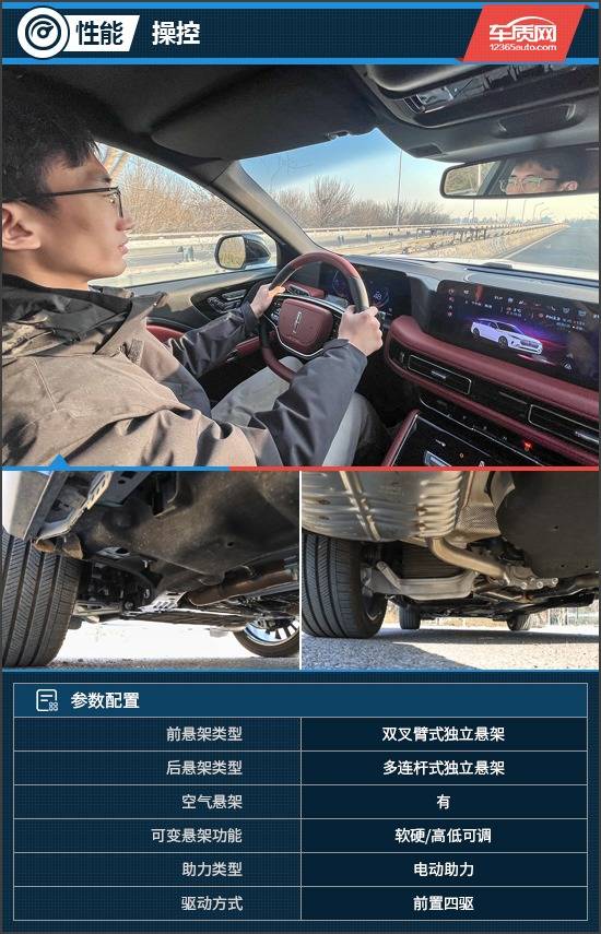 全新長安林肯飛行家采用前雙叉臂式、后多連桿式獨立懸架組合,整體調校比較適中,日常駕駛能夠有效過濾掉多余的振動。連續(xù)彎路時,懸架的支撐性也足夠出色。值得一提的是,評測車配備了Air Glide雙腔空氣懸架與CCD自適應懸架軟硬調節(jié)功能,可根據(jù)路況和駕駛模式自動調節(jié)懸架硬度和車身高度,確保在不同路況下車輛的穩(wěn)定性和舒適性。