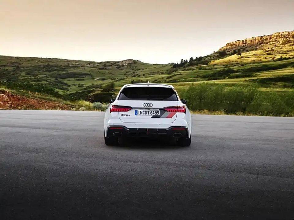 車身尾部,大尺寸高擾流板,尾窗的傾斜度是比較大,對稱式尾燈設計。配備RS 6 GT徽標,大尺寸橢圓形真排氣,后包圍配備夸張擴散器。