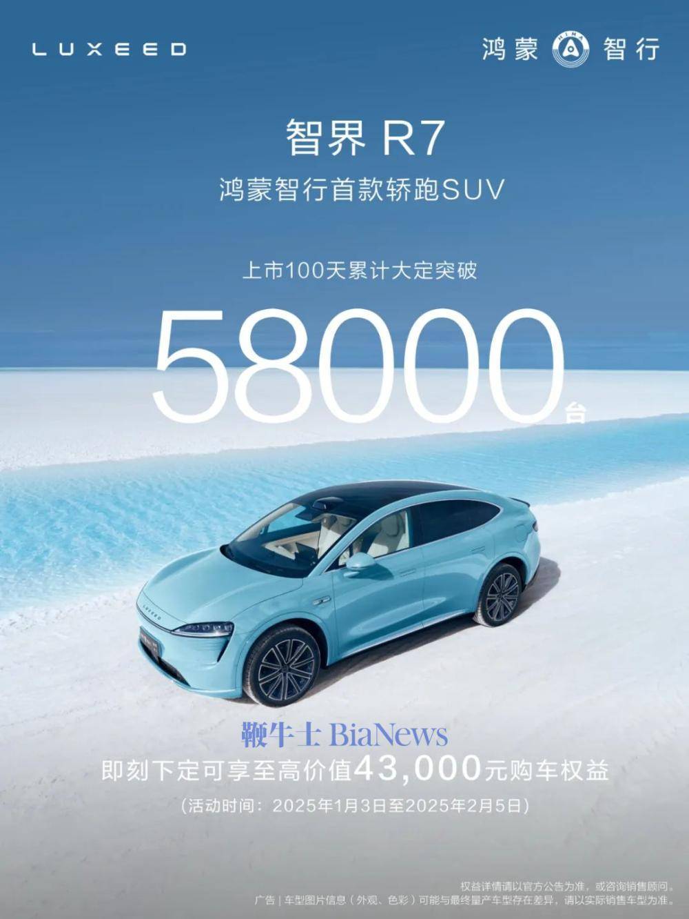 近日,上海迎來了智界R7增程版的首次交付儀式,標志著這款備受矚目的新能源車型正式步入市場。據統計,自智界R7系列車型于三個月前上市以來,其全系訂單量已迅猛攀升至58000余臺,市場反響熱烈。