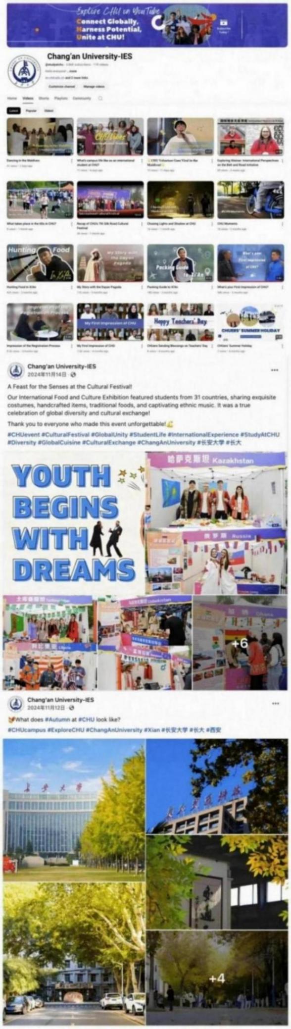 近年來,國際教育學院積極貫徹落實黨的二十大關于加快建設教育強國、科技強國、人才強國和加強國際傳播能力建設的戰略部署,高度重視海外網絡傳播,著力擦亮“留學長大”名片,注冊運營X(Twitter)、Facebook、Instagram、TikTok等社交媒體賬號,2024年全年各平臺共發布推文524篇,曝光量4,753,238次,鏈接點擊量30,468次,平臺總粉絲134,755人,新增粉絲46,768人。目前,學校海外社交媒體賬號共推出“長大光影”“長大前沿”“西安生活”等欄目,在招生季、迎新季與畢業季策劃專題內容,生動全面介紹校園生活、展示學校發展成就,服務來華留學生招收管理。“Youth Begins with Dreams第七屆絲路文化節”“留學十二時辰”等貼文獲得廣泛關注,反響良好。