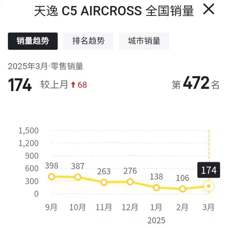 進(jìn)入2025年,神龍汽車似乎并沒(méi)有擺脫銷量下滑趨勢(shì),尤其是雪鐵龍品牌的銷量下滑,仍然在繼續(xù)。根據(jù)數(shù)據(jù)顯示,2025年3月份,東風(fēng)雪鐵龍的銷量?jī)H為1395輛,相比2025年2月份的銷量為1995輛,環(huán)比下滑30.07%。