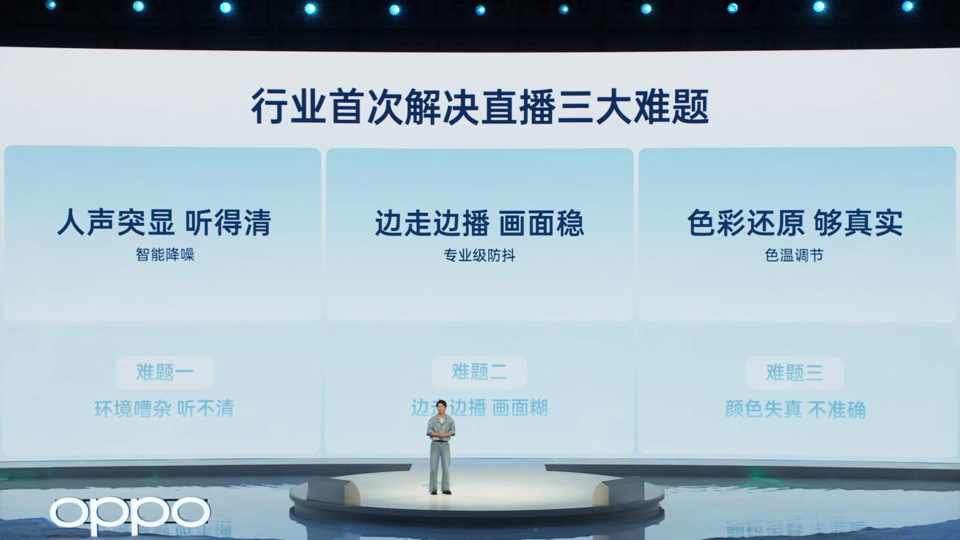 “比如在夜市、漫展直播,游客的說話聲、粉絲的吶喊聲讓環境非常嘈雜,觀眾根本聽不清主播在說什么,沒有辦法很好地互動,為此還要花幾百上千購買專業的領夾麥。”陳思聰說,Reno 14Pro首創直播場景下的智能降噪,基于三麥克風陣列硬件與AI回聲消除算法,幫助清晰收音。