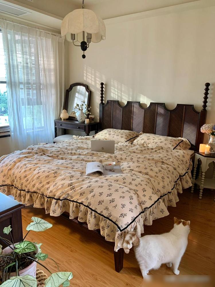 最欣賞她把實用和審美平衡得恰到好處。島臺餐桌二合一的設計特別適合小戶型,轉盤式黑膠唱機這種復古元素用得克制不突兀。臥室木百葉窗控光絕了,比遮光簾更有氛圍。浴室洗手盆旁擺鮮花這種細節,比砸錢買奢牌衛浴更有生活智慧。