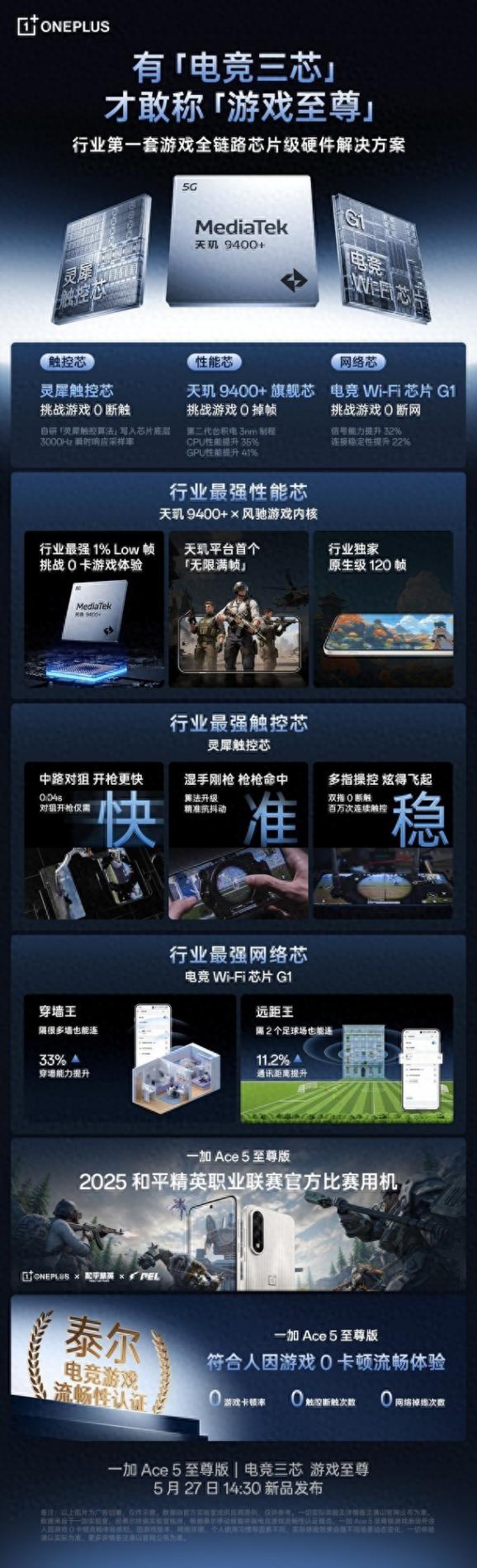 近日,一加手機正式推出一加 Ace5 至尊版,該機型憑借首發搭載的“電競三芯”技術,打造出行業首個游戲全鏈路芯片級硬件解決方案,為玩家帶來前所未有的極致流暢游戲體驗,并順利通過行業首個“泰爾電競游戲流暢性認證”。