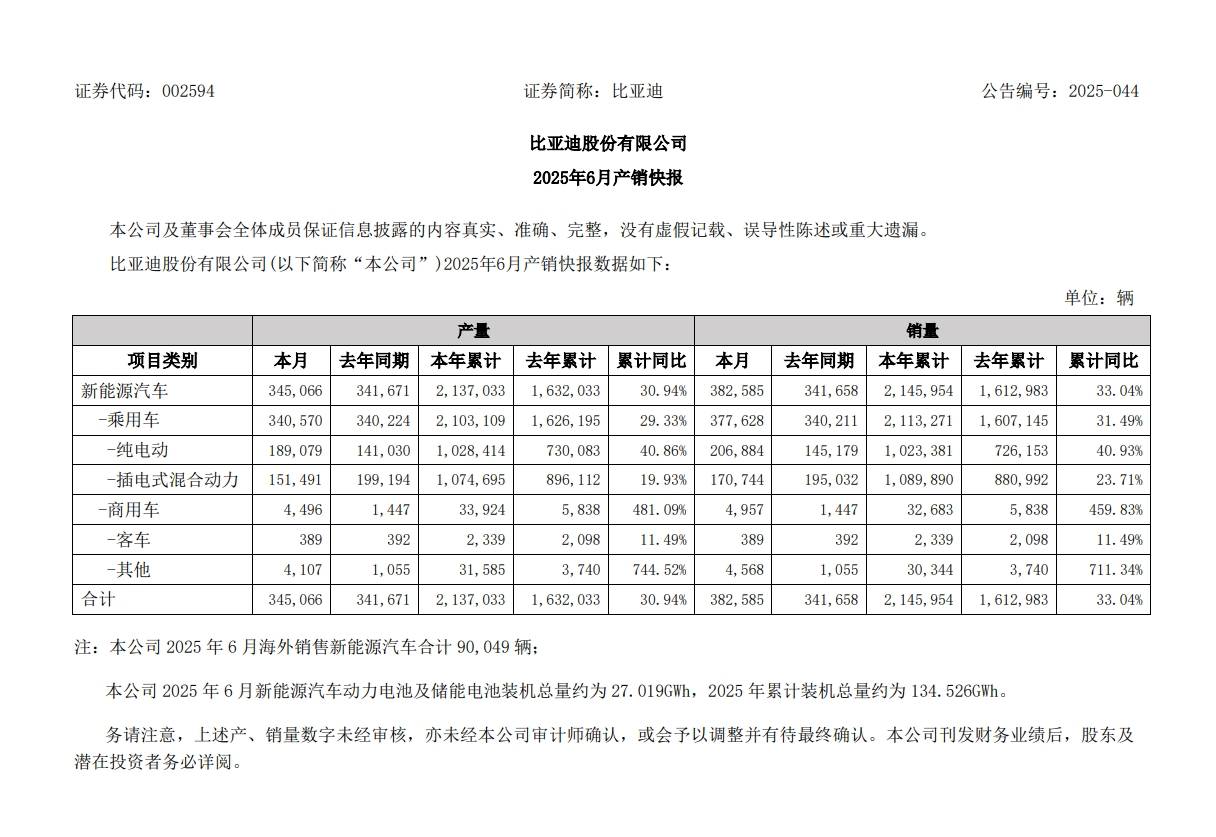 1-6月份,比亞迪賣出了215萬輛,同比增長33%,再創新高。