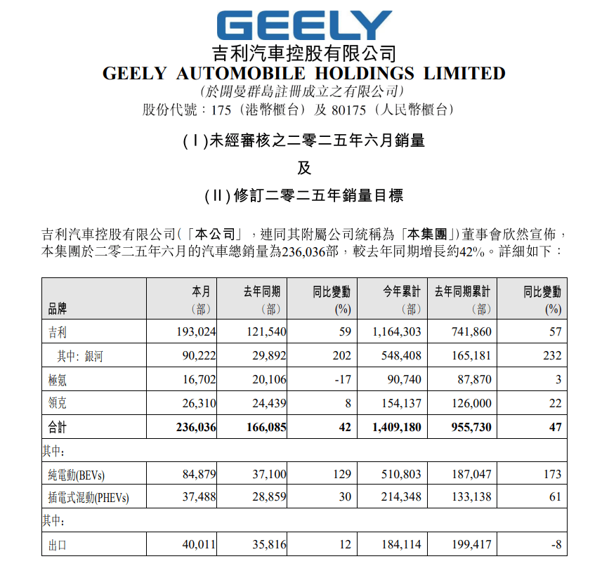 基于出色的業績表現,在這份快報上,吉利控股同步公布上調2025年度銷量目標計劃,由271萬輛增至300萬輛。這不禁讓人疑惑,在現在幾近白熱化的市場里,為何吉利控股會有這么大的底氣?