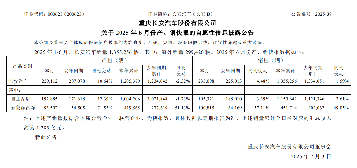 在海外市場,長安汽車銷量近30萬輛,同比增長近50%。