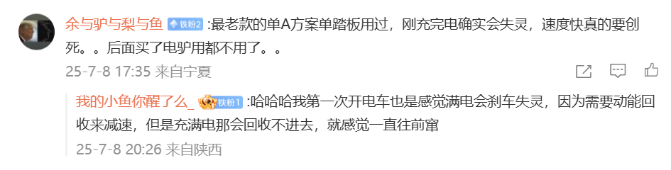 當然,評論區里也有個別網友覺得單踏板模式用習慣了之后是個很好用的功能。